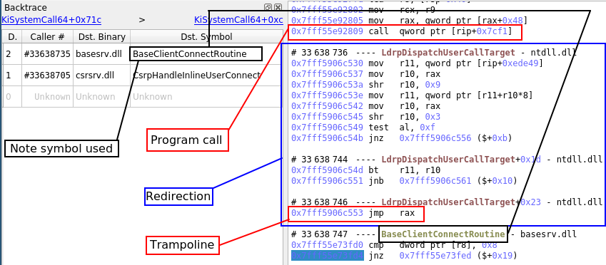 The taint analysis automates the task of following some data from memory buffers and registers to other buffers. When performing a backward taint, it allows to find the origin of the tainted data.